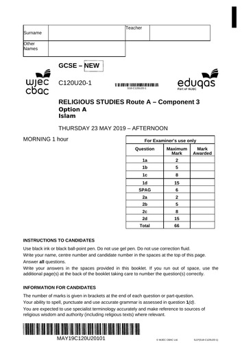 June 2018 WJEC A-Level Religious Studies Past Papers 1120U. A Study of Religion Option B Islam A120UB0-1 Download Paper - Download Mark Scheme. Eduqas GCSE Religious Studies takes a distinctive issues based approach to the study of religious philosophical and ethical studies in the modern world.