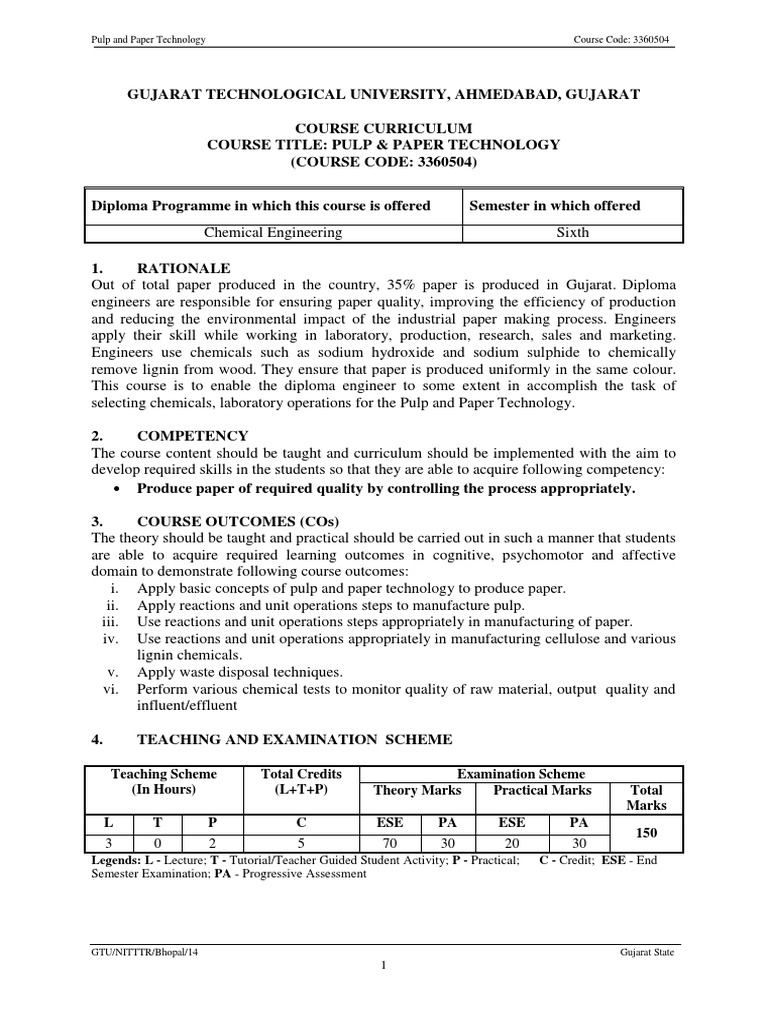 Syllabus Pulp Paper Technology Pulp Paper Paper