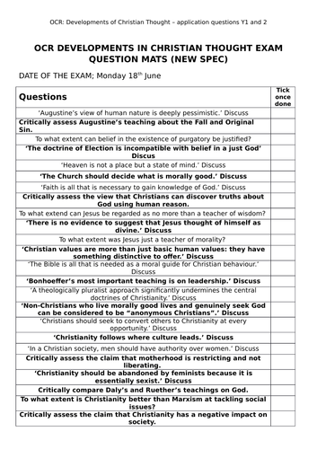 Ocr A Level Religious Studies Exam Question Mats Teaching Resources