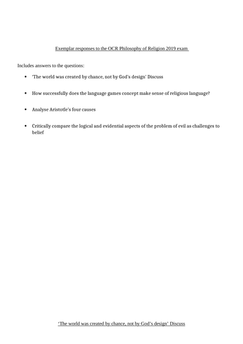 Exemplar Essays For 2019 Religious Studies Exam Philosophy Of Religion Ocr H573 A Grade Paper Teaching Resources