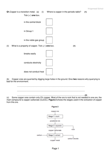 Extracting Metals Rocks Chemistry Revision Past Paper Questions And Answers Teaching Resources